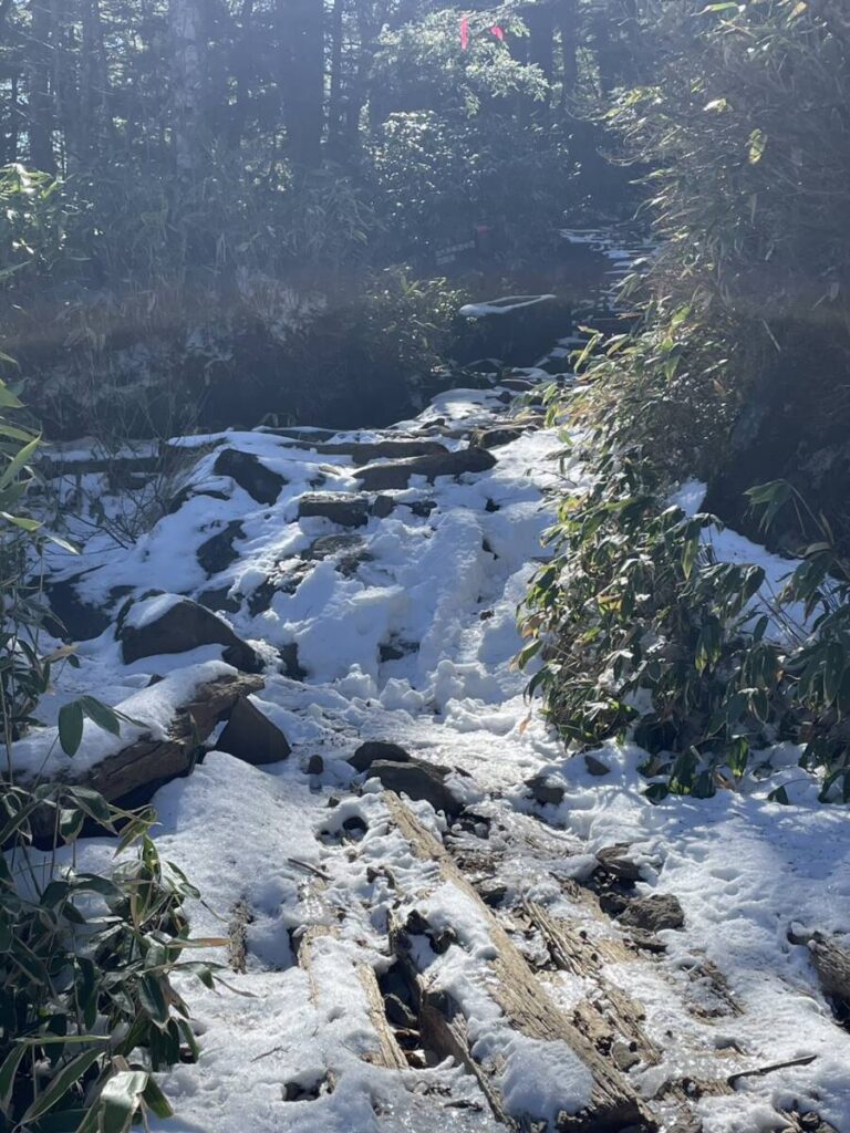 2025 1108 ブログ 御嶽山、静かに冬支度 こんにちは!11月3日、御嶽山の山麓駅周辺から山頂にかけて雪が降り、ほんのり雪化粧となりました写真とともに、季節の移ろいをお届けします。 ▲11月3日 ▲11月8日、山頂駅からの景色山麓のカラマツが、橙色に染まっていて秋と冬がいっしょに並んでいるような景色です。 ▲7合目 行場山荘雪があり少し凍っています。うっすら雪化粧の御嶽山から季節の便りをお届けしました明日11月9日まで営業しておりますので、ぜひお立ち寄りください。 Post Share RSS Pin it 紅葉状況② 前の記事
